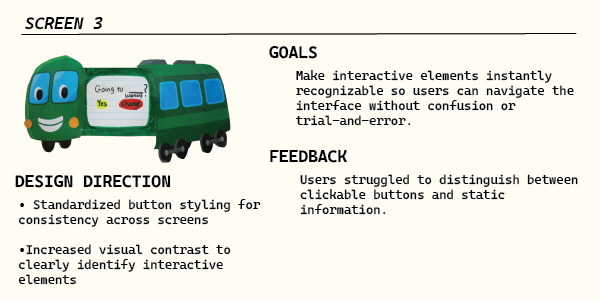 The final outcome was largely informed by these observationsThe final system includes a physical kiosk, a guided mobile interface, and a take-away receipt to support users at different levels of comfort with technology.